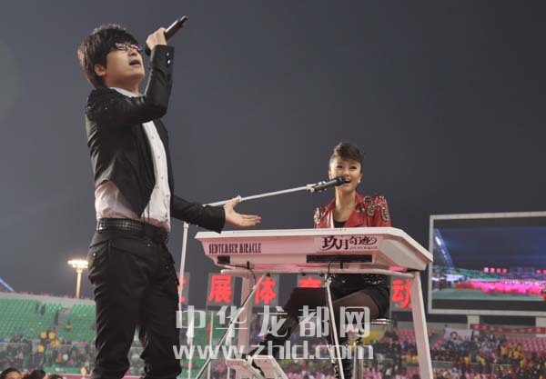 就在觀眾意猶未盡之時(shí),著名演唱組合“玖月奇跡”突然出現(xiàn)在表演場(chǎng)地上,引起觀眾一陣騷動(dòng)?!熬猎缕孥E”的女成員王小瑋在專(zhuān)用樂(lè)器“雙排鍵”上手腳并用,演奏出優(yōu)美樂(lè)曲的同時(shí),男歌手王小海飆起了高音,震驚全場(chǎng),把現(xiàn)場(chǎng)氣氛又一次推向高潮。