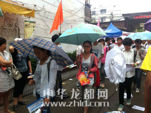 ????昨日12時許,在周口市區(qū)七一路一小考點(diǎn),家長在學(xué)校大門口迎接走出考點(diǎn)的學(xué)生(如圖二)。