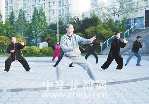 ??? 85歲高齡的張安詳老人練習(xí)太極劍三十二式。老人耳聰目明,平時喜歡太極劍、太極扇等運動項目。(本報記者 攝)