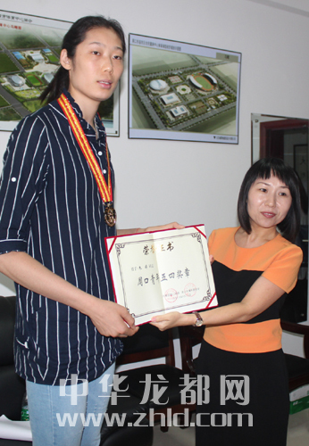 團市委為朱婷頒發(fā)榮譽證書