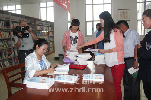 ????昨日16時(shí),在市圖書館綜合閱覽室,市文化局曹克宏、市圖書館李佳和本報(bào)田維國(guó)、董雪丹等各單位相關(guān)負(fù)責(zé)人參加了捐贈(zèng)儀式,曹克宏向柳韻頒發(fā)了愛心捐贈(zèng)榮譽(yù)證書。捐贈(zèng)儀式結(jié)束后,柳韻在現(xiàn)場(chǎng)舉行了簽字贈(zèng)書活動(dòng)(如圖)。面對(duì)讀者的熱情,柳韻一一簽字贈(zèng)書,現(xiàn)場(chǎng)又簽贈(zèng)系列圖書近百冊(cè)。