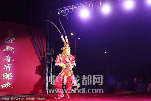 ????還記得小時(shí)候我們搬著小板凳到村頭看電影或聽?wèi)騿??如今啊,農(nóng)民不再看電影聽?wèi)蛄耍情_始在村頭辦“村晚”啦。2月2日晚上,太康縣老冢鎮(zhèn)孟莊行政村舉辦了一臺(tái)猴年“村晚”。演出現(xiàn)場震天的鼓點(diǎn)和著嗩吶的節(jié)拍,熱鬧非凡。英俊的公子、羞怯的大家閨秀,神采奕奕的大爺大媽,一個(gè)個(gè)生動(dòng)的角色,一段段幽默詼諧的節(jié)目,吸引著附近數(shù)十個(gè)村的兩萬余名村民在此觀看。