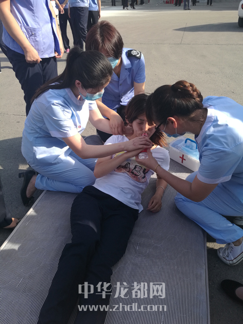????在模擬車站大廳發(fā)生火災(zāi)的演練中,車站值班站長第一時間撥通119、120求救,并組織工作人員幫助旅客有序撤離。車站醫(yī)療搶救組對撤離到安全地帶的受傷旅客進行施救(如圖二)。大廳內(nèi)人員全部撤離后,救援人員手持滅火器迅速組織滅火(如圖三)。