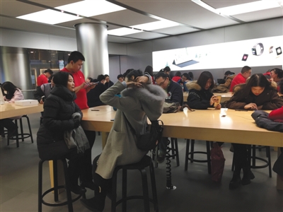????12月11日,蘋果王府井直營(yíng)店售后服務(wù)等待區(qū)。 實(shí)習(xí)生 孫亞慧 攝