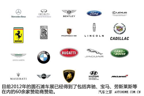 ??? 在贊助商方面,2012年的圓石灘車展到目前為止已經(jīng)有包括勞力士、蘭博基尼、寶馬、奔馳、法拉利等品牌在內(nèi)的60余家贊助商提供贊助,在現(xiàn)場(chǎng)你會(huì)看到很多這些品牌的廣告,當(dāng)然這些品牌的廣告及贊助費(fèi)的部分會(huì)被主辦方捐獻(xiàn)給慈善機(jī)構(gòu)。