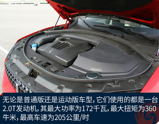 普通版和運(yùn)動(dòng)版車型只提供一套動(dòng)力系統(tǒng),發(fā)動(dòng)機(jī)是一臺(tái)2.0T直噴發(fā)動(dòng)機(jī),技術(shù)上采用了雙流道渦輪增壓以及缸內(nèi)直噴技術(shù);其最大功率為172千瓦,最大扭矩為360牛米,這臺(tái)發(fā)動(dòng)機(jī)跟哈弗H7上的是一樣的。變速箱方面,新車匹配的是長(zhǎng)城自主研發(fā)的7擋濕式雙離合變速器。