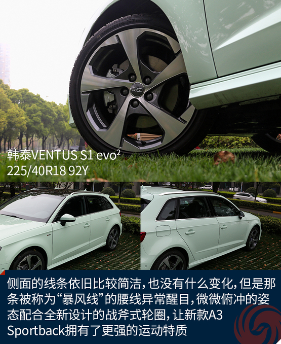 側(cè)面的線條依舊比較簡潔,也沒有什么變化,但是那條被稱為“暴風(fēng)線”的腰線異常醒目,微微俯沖的姿態(tài)配合全新設(shè)計(jì)的戰(zhàn)斧式輪圈,讓新款A(yù)3 Sportback擁有了更強(qiáng)的運(yùn)動特質(zhì)。