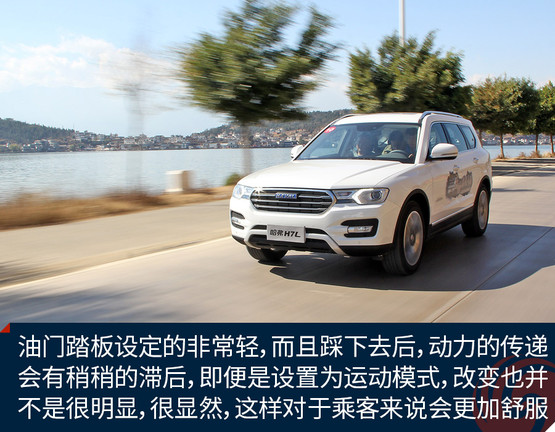 既然是7座車型,藍(lán)標(biāo)H7L在調(diào)校方面也更加注重舒適,這一點(diǎn)從油門踏板可以很明顯的感覺(jué)到。油門踏板設(shè)定的非常輕,而且踩下去后,動(dòng)力的傳遞會(huì)有稍稍的滯后,即便是設(shè)置為運(yùn)動(dòng)模式,改變也并不是很明顯,很顯然,這樣對(duì)于乘客來(lái)說(shuō)會(huì)更加舒服。相比于油門踏板,剎車踏板則力度適中且比較線性。