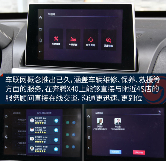 沒(méi)錯(cuò),你可能見(jiàn)過(guò)帶語(yǔ)音控制的功能,但還沒(méi)見(jiàn)過(guò)識(shí)別這么靠譜的;你可能見(jiàn)過(guò)能陪聊的,但還沒(méi)見(jiàn)過(guò)這么貧的;你可能見(jiàn)過(guò)支持裝APP的,但還沒(méi)見(jiàn)過(guò)集成社交平臺(tái),能直接找車友、交朋友,甚至在地圖界面發(fā)彈幕的;你可能見(jiàn)過(guò)帶保養(yǎng)等服務(wù)的,但還沒(méi)見(jiàn)過(guò)能直接跟4S店的服務(wù)代表在線交談的......也許功能上還有需要完善的細(xì)節(jié),但不可否認(rèn),奔騰X40在車聯(lián)網(wǎng)層面開(kāi)辟了一個(gè)新的方向。
