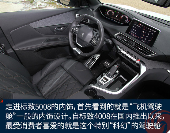 走進標致5008的內(nèi)飾,首先看到的就是標致最新的“飛機駕駛艙”一般的內(nèi)飾設計。自標致4008在國內(nèi)推出以來,最受消費者喜愛的就是這個特別“科幻”的駕駛艙,相同的設計也保留在了標致5008之上。
