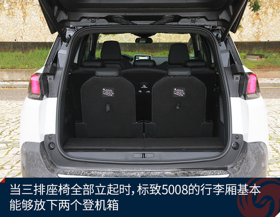 標致5008提供了三排座椅還有另外一個顯著的好處是,可以豐富行李廂的使用方式。通過實際體驗可以發(fā)現(xiàn),當三排座椅全部立起時,標致5008的行李廂基本能夠放下兩個登機箱,但如果第三排不需要坐人時,可以將第三排完全放平(甚至不會發(fā)現(xiàn)有第三排的存在),此時行李廂放兩個大號托運箱應該也是沒有問題的。