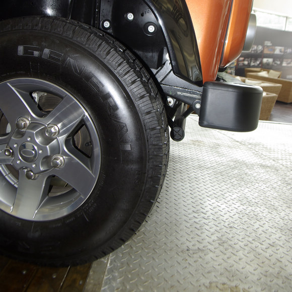 ????衛(wèi)士的接近角達到了驚人的47度,厚實的鋼板加工而成的前杠也是硬派越野車的標志,這樣的前杠不僅可以在沖坡時保護車體,更可以掛載電動絞盤等設備。
