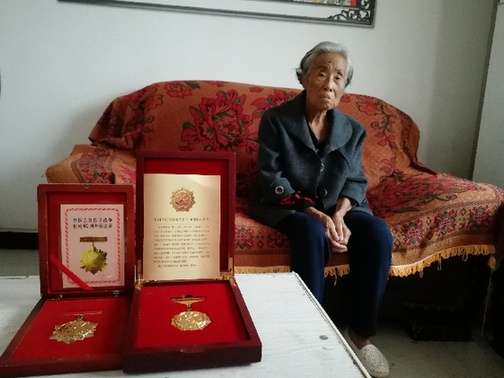 袁義英老人看上去很瘦弱,眼睛不算大,膚色有些發(fā)暗,干枯的手摸上去有點(diǎn)兒涼?!斑@段時(shí)間我媽身體不太好,在縣醫(yī)院住了一個(gè)多月,昨天剛回來。以前的事,她有些記得清,有些記不清。有人聽她講故事,她就會(huì)激動(dòng),有時(shí)候一激動(dòng)就忘事?!痹x英老人的兒子宋軍風(fēng)說。
