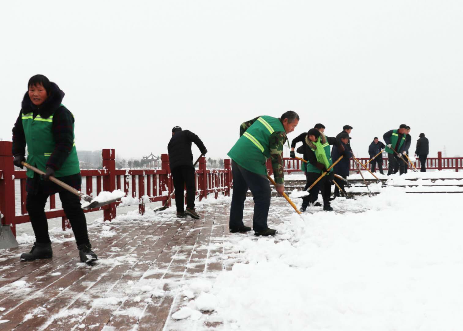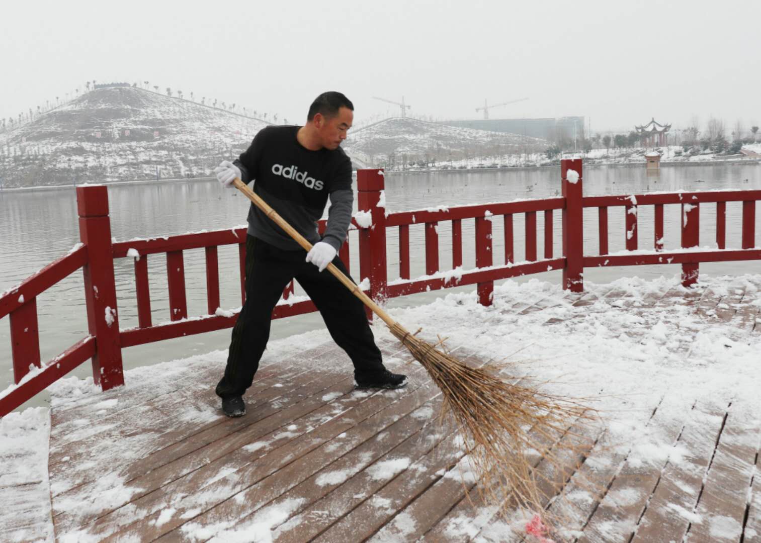 截止到下午5時(shí),還有職工和志愿者在公園里清理冰雪,市政園林中心副主任李紅衛(wèi)帶領(lǐng)職工堅(jiān)守崗位,形成一道靚麗的風(fēng)景線。鹿邑縣市政園林中心主任劉克一說:“群眾滿意開心游玩,我們累點(diǎn)應(yīng)該的,志愿者的義務(wù)清掃讓我們和游客深受感動(dòng)!”