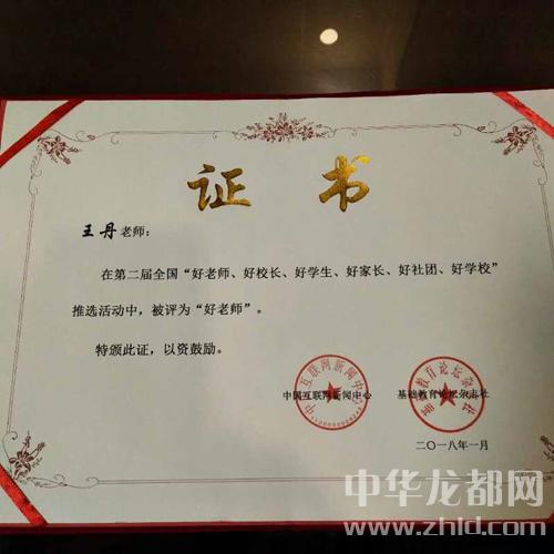 1月5日至6日,由中國基礎(chǔ)教育論壇雜志社和中國互聯(lián)網(wǎng)新聞中心主辦的“好教師先進事跡報告會暨第二屆六好展示活動”在北京中關(guān)村隆重舉行。王丹作為一名“好老師”在會上作了發(fā)言。她發(fā)言的題目是《家訪,讓我們走進孩子的內(nèi)心》。記者了解到,王丹在平時的教育工作中一直把家訪當(dāng)作工作中的重要任務(wù),正是由于重視家訪,有不少“問題”兒童在她的教育下得到身心健康成長,成為社會的有用之才。當(dāng)日的會上,國家總督學(xué)顧問、原教育部副部長張?zhí)毂?,國家副總督學(xué)、原教育部基礎(chǔ)教育司司長王文湛,北京市朝陽區(qū)教委副主任、北京中學(xué)校長夏青峰,國家義務(wù)教育教學(xué)課程研制組核心成員、北京市中關(guān)村第三小學(xué)校長劉可欽,中國人生科學(xué)學(xué)會副會長兼中小學(xué)教育專業(yè)委員會會長聶延軍和科學(xué)會秘書長孟凡浩都做了重要講話。