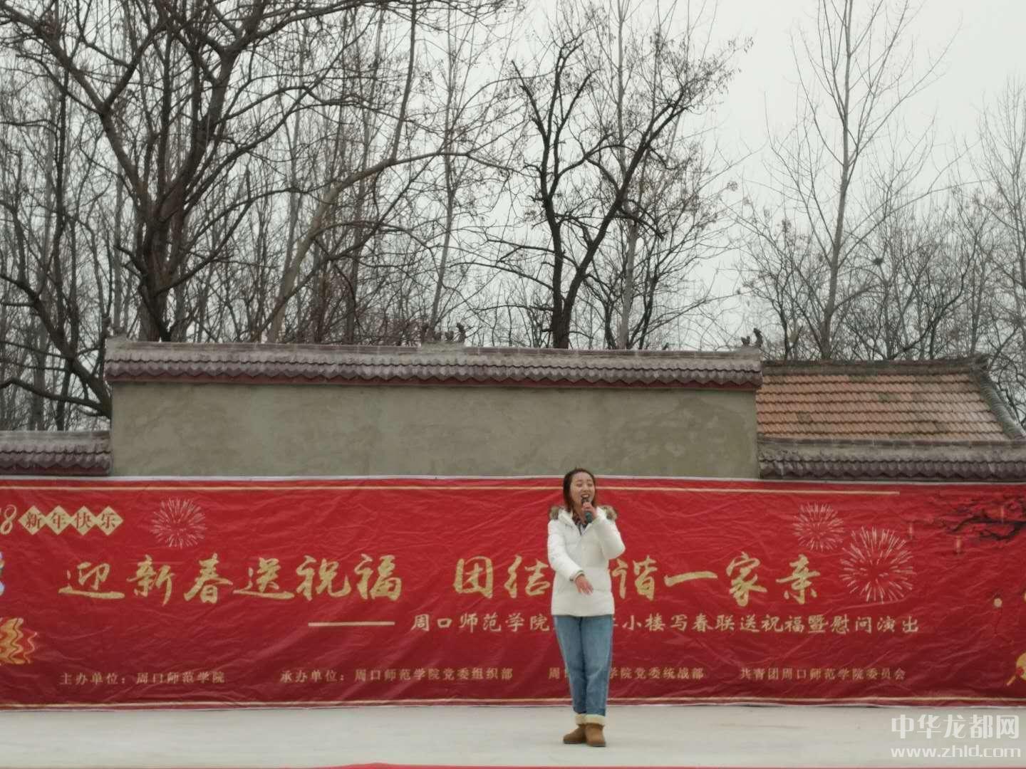中華龍都網(wǎng)訊(周口報(bào)業(yè)全媒體記者 徐松 通訊員 李文明)1月23日,鄲城的氣溫降至零下3℃。周口師范學(xué)院黨委副書(shū)記楊箴紅、副校長(zhǎng)程秀波,帶領(lǐng)學(xué)院書(shū)法家和藝術(shù)團(tuán)30余名師生,深入鄲城縣李樓鄉(xiāng)李小樓行政村,開(kāi)展寫(xiě)春聯(lián)送祝福暨慰問(wèn)演出活動(dòng)。精彩紛呈的文藝節(jié)目、火紅的對(duì)聯(lián)、真情的慰問(wèn)讓李小樓數(shù)百群眾忘卻了冬日的寒冷,和慰問(wèn)團(tuán)共品“和諧一家親”文化盛宴。鄲城縣人大主任李建軍、工會(huì)主席王超以及李樓鄉(xiāng)黨委、政府負(fù)責(zé)人參加慰問(wèn)活動(dòng)。