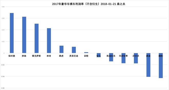 寶馬、奧迪在2018年經(jīng)銷商利潤(rùn)有望轉(zhuǎn)好,隨寶馬X3國(guó)產(chǎn)、奧迪Q5全新?lián)Q代,銷售結(jié)構(gòu)將有所改善。捷豹路虎隨國(guó)產(chǎn)化產(chǎn)品數(shù)量進(jìn)一步增加,有助于增加在細(xì)分市場(chǎng)的競(jìng)爭(zhēng)力;凱迪拉克、沃爾沃是依靠?jī)r(jià)格取勝的品牌,2018年如果能提升品牌力,經(jīng)銷商利潤(rùn)有希望得以改善。瑪莎拉蒂、謳歌由于銷量太小,成交價(jià)格一個(gè)最高,一個(gè)最低,都對(duì)其銷量、利潤(rùn)都有影響。