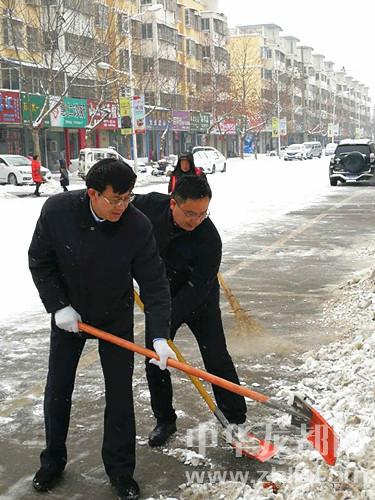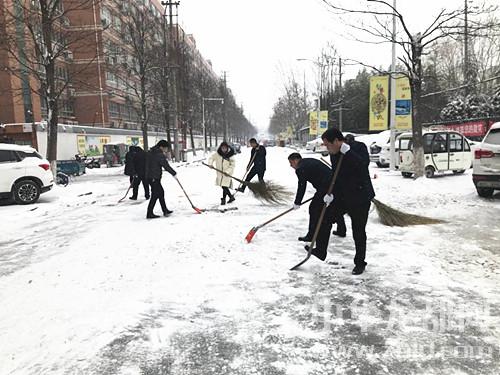 隨后,馬明超還到大同街、新華大街、陳州路查看各單位清掃積雪情況,走訪慰問(wèn)衛(wèi)生區(qū)清理積雪的干部職工。
