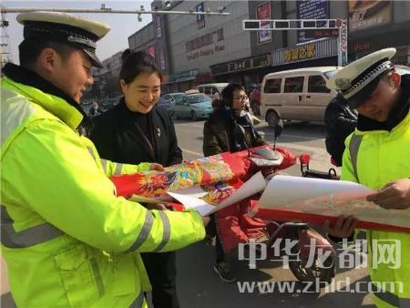中華龍都網(wǎng)訊(周口報業(yè)全媒體本報記者 韋偉 通訊員王向靈 郭力銘)“這位大姐,剛才紅綠燈時您能按時等候,這是對您的獎勵?!?月8日上午,記者在沈丘縣街頭看到,面對遵守法規(guī)、文明出行的市民王女士,交警劉濤給她送上一套紅紅的新春對聯(lián)。