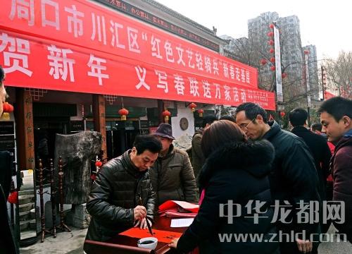 中華龍都網(wǎng)訊 (周口報業(yè)全媒體記者 彭慧 文/圖)春節(jié)即將來臨,喜慶的氛圍逐漸濃厚,近來中心城區(qū)相繼舉辦文化活動,為廣大市民義寫春聯(lián),送去新春的祝福。2月9日上午,川匯區(qū)、川匯區(qū)書法家協(xié)會聯(lián)合華威民俗文化博物苑,積極響應(yīng)“紅色文藝輕騎兵”新春走基層號召,一副副吉祥喜慶寓意的春聯(lián),免費(fèi)贈送給千家萬戶。據(jù)悉,這一公益活動已持續(xù)14年之久。