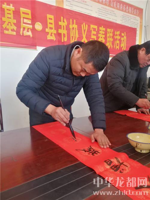 中華龍都網(wǎng)訊(周口報業(yè)全媒體記者 徐松)2月8日上午,由鄲城縣委統(tǒng)戰(zhàn)部駐村辦、鄲城縣文聯(lián)、鄲城縣青年書法家協(xié)會共同組織的“禮贊新時代,新春送萬福——鄲城縣文聯(lián)紅色文藝輕騎兵新春走基層青年書法家送萬福進萬家義寫”活動在鄲城縣虎崗鄉(xiāng)后趙行政村村室舉行,來自鄲城縣青年書法家協(xié)會的十余名著名書法家在現(xiàn)場揮毫潑墨,義務(wù)書寫了二百幅“?!弊趾痛郝?lián),用喜盈盈、紅燦燦的春聯(lián)為廣大貧困戶提前送去狗年的祝福。