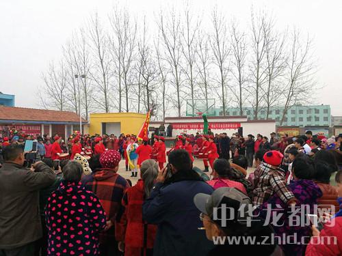 比李桂梅更有甚者,附近單樓村村民自己組成的群眾文藝隊聞聽消息之后,干脆全副武裝、濃妝艷抹來參演,和縣里來的木蘭旱船專業(yè)隊來場友誼賽。這邊鑼鼓咚咚鏘,那邊旱船鈴當響,這邊空竹拖曳彩帶飛龍滿天飛,那邊“孫悟空舞金箍棒”“豬八戒背媳婦”逗得孩子們笑得前仰后合,再加上廣場東南角的太極表演、少年武術(shù)表演,還有舞臺一角的大鼓書演藝,整個廣場成為歡樂的海洋。