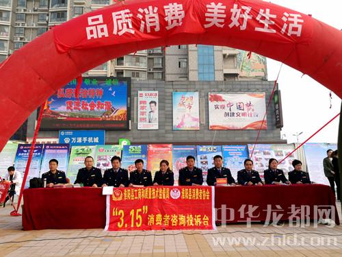 中華龍都網(wǎng)訊(周口報業(yè)全媒體記者 杜欣 文/圖)3月15日上午,淮陽縣消費者協(xié)會組織當(dāng)?shù)叵嚓P(guān)職能部門,在潤德廣場舉辦2018年3·15國際消費者權(quán)益日紀念大會暨大型宣傳咨詢服務(wù)活動?;搓柨h人大副主任、縣消費者協(xié)會會長霍偉,淮陽縣人民政府副縣長薛燕等參加活動?;顒蝇F(xiàn)場,職能部門專門設(shè)立了執(zhí)法“別動隊”,在接受消費者現(xiàn)場投訴后,隨時出動處理。
