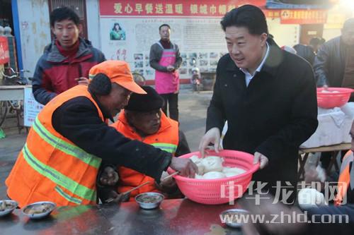 中華龍都網(wǎng)訊(周口報(bào)業(yè)全媒體記者 馬治衛(wèi) 通訊員 徐孫楊)3月20日早,新疆河南總商會(huì)會(huì)長(zhǎng)朱軍一行從新疆專程趕往太康,為該縣“愛(ài)心早餐”工程捐款10萬(wàn)元,并親自為環(huán)衛(wèi)工人端菜送饅頭,并向志愿者和環(huán)衛(wèi)工致以親切地慰問(wèn)。