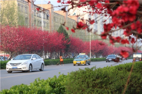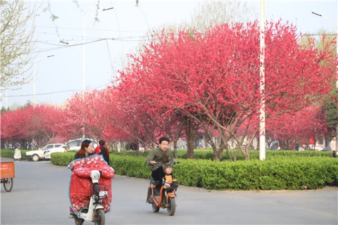 楊樹(shù)、垂柳、法桐,這是常見(jiàn)的綠化樹(shù),可是你見(jiàn)過(guò)整條道路用桃樹(shù)做綠化的嗎?在周口市建設(shè)大道西段,長(zhǎng)達(dá)1公里的主干道兩側(cè)種滿(mǎn)桃樹(shù)?,F(xiàn)在正值陽(yáng)春三月桃花盛開(kāi),整條道路成了一片花的海洋,儼然是鬧市區(qū)里的世外桃源。