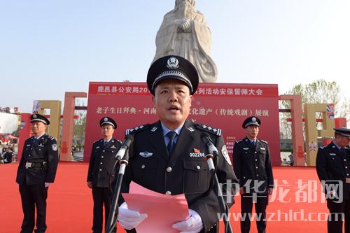 中華龍都網(wǎng)訊(周口報(bào)業(yè)全媒體記者 李瑞才 通訊員 石中華 文/圖)為扎實(shí)做好2018年老子廟會(huì)系列活動(dòng)安全保衛(wèi)工作,進(jìn)一步鼓舞士氣、激勵(lì)斗志,誓奪系列活動(dòng)安保工作決戰(zhàn)全勝。2018年3月30日下午,鹿邑縣公安局在太清宮老子文化廣場(chǎng)隆重舉行2018年老子廟會(huì)系列活動(dòng)安全保衛(wèi)誓師大會(huì),周口市公安局黨委委員、鹿邑縣副縣長(zhǎng)、公安局長(zhǎng)何新敏出席大會(huì)并作動(dòng)員講話。局黨委全體班子成員和參加安保執(zhí)勤的全體民警、輔警、武警官兵、消防隊(duì)員共計(jì)1200余人參加了誓師大會(huì)。誓師大會(huì)由政委任金瑞主持。