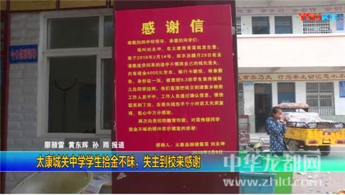 2月14日,袁偉強(qiáng)與同學(xué)一道上街玩。在太康縣清集鎮(zhèn)政府門口,袁偉強(qiáng)發(fā)現(xiàn)一個(gè)錢包。撿起一看,錢包里有一沓現(xiàn)金、銀行卡、身份證等物品。左思右想,袁偉強(qiáng)決定把錢包交給鎮(zhèn)政府工作人員。在清集鎮(zhèn)政府工作人員的幫助下,終于找到了失主劉永坤。拿到失而復(fù)得的錢包,劉永坤執(zhí)意要感謝袁偉強(qiáng),電話聯(lián)系了幾次,都被袁偉強(qiáng)拒絕。劉永坤心里總是過(guò)意不去,就寫(xiě)了一封感謝信,制作了一面錦旗,送到袁偉強(qiáng)所在學(xué)校,表達(dá)自己的感激之情。
