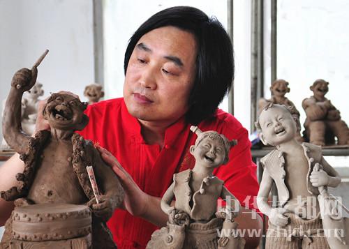 從發(fā)現泥人碰撞易碎、遇水易損,張振福便歷盡艱辛、反復嘗試,終于像燒磚頭一樣,把泥塑燒成了陶塑;然而,從土黃色變成了磚瓦色,陶塑的顏色仍然單一、呆板,不能展示出泥塑的深層次神韻。于是,張振福大膽地將泥塑與鈞瓷結合起來,創(chuàng)造了一個不一樣的藝術世界。