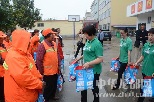 當(dāng)天,西華縣萬果園商貿(mào)有限公司自發(fā)組織來到該縣城管局,向一線城管人員表達(dá)敬意,并向他們捐贈(zèng)價(jià)值2萬余元的毛巾、洗衣粉等愛心物資。
