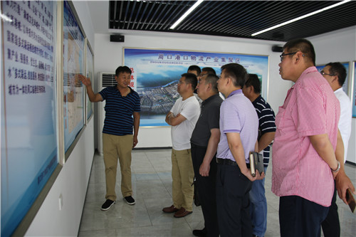 離開(kāi)碼頭,考察團(tuán)來(lái)到中心港碼頭展廳,段傳奇向他們介紹了周口市委、市政府發(fā)展臨港經(jīng)濟(jì)、打造中原港城的戰(zhàn)略規(guī)劃,以及在全市發(fā)展戰(zhàn)略下,周口港區(qū)加大招商引資、發(fā)展多式聯(lián)運(yùn)、打造臨港產(chǎn)業(yè)園區(qū)做出的一系列發(fā)展舉措。