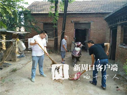 如果環(huán)境衛(wèi)生保持不好,村民的院落就成了滋生蚊蟲的“溫床”。24日早上,大家再一次來到張龐村,宣傳扶貧攻堅(jiān)、“六村共建”等政策,動手幫群眾打掃院落衛(wèi)生,趁天好幫村民曬糧食。副部長宋斌在走訪時(shí)聽說貧困戶劉金才近日肺病復(fù)發(fā),呼吸困難,“心里上不來氣兒”,趕緊撥打“120”,聯(lián)系鎮(zhèn)衛(wèi)生院醫(yī)生接診,并和駐村第一書記霍輝、駐村隊(duì)員李富軍、幫扶隊(duì)員張志華、郭威自掏腰包,湊了500塊錢交到劉金才老伴手里,解了燃眉之急。