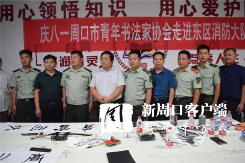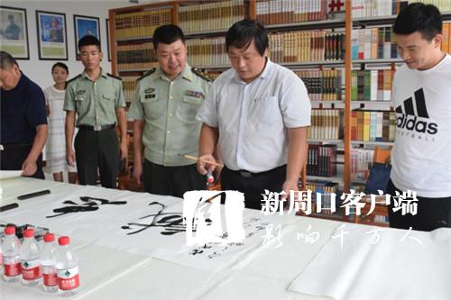 為進(jìn)一步充實官兵的警營文化生活,喜迎建軍91周年,7月30日下午,周口市青年書法家協(xié)會會長李為等人走進(jìn)東新區(qū)消防大隊,現(xiàn)場揮毫潑墨,用飽蘸感情的書法作品向消防官兵表達(dá)了節(jié)日祝福。