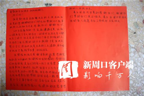 “我一定會銘記黨和政府的關(guān)懷,永遠忘不了縣婦幼保健院的幫助,時刻懷著一顆感恩的心,努力學(xué)習(xí),回報社會,把這份愛心傳遞下去……”王浩激動地說。為了表達感謝,王浩將一封感謝信遞交給了亢國良手中。