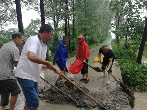 8月19日早7點(diǎn),陳留張駐村工作隊(duì)長(zhǎng)李成功、村副主任張建靈發(fā)現(xiàn)險(xiǎn)情后,便開始緊急會(huì)商,提出科學(xué)搶修方案。最后確定,調(diào)用本村的鏟車,利用本村商砼站的石料,組織本村的村民,迅速趕赴事發(fā)地點(diǎn)開展搶修工作。