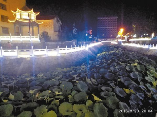 行走在鹿邑縣“五河”兩岸的健身步道上,荷花飄香、沁人心脾。站在天橋上,美景盡收眼底。清澈河水流淌,燈光點點鑲嵌兩岸……流光溢彩的燈光讓老子故里裝扮一新,成了一座名符其實的不夜城。圖①②③為老子故里夜景。