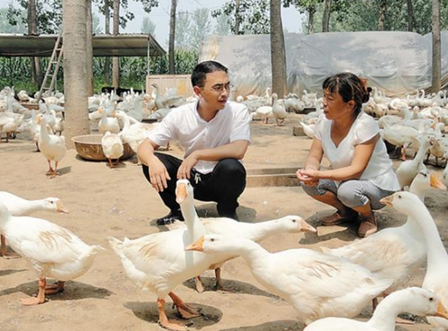 鄧城鎮(zhèn)扶貧干部幫貧困戶養(yǎng)鵝致富