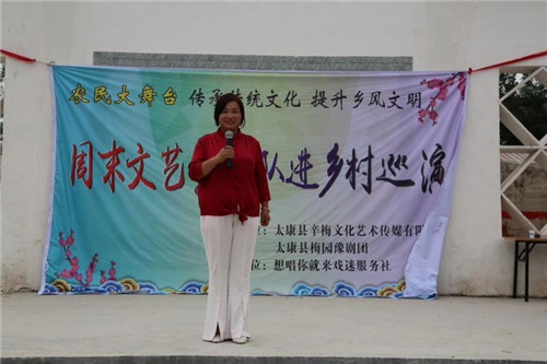 據(jù)了解,周末文藝宣傳隊由太康縣辛梅文化藝術(shù)傳媒有限公司、太康縣梅園豫劇團(tuán)主辦,想唱你就來戲迷服務(wù)社承辦。旨在傳承戲曲文化、提升鄉(xiāng)風(fēng)文明,為廣大群眾奉獻(xiàn)精神文化食糧。