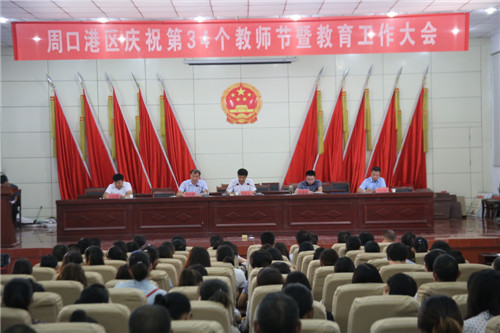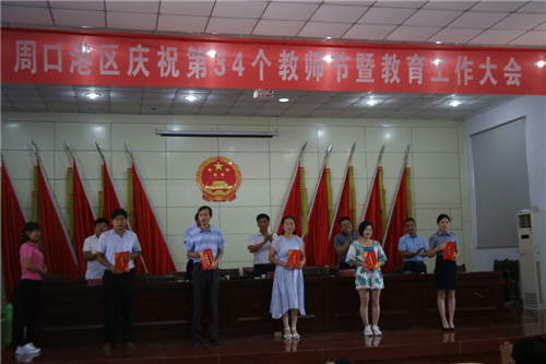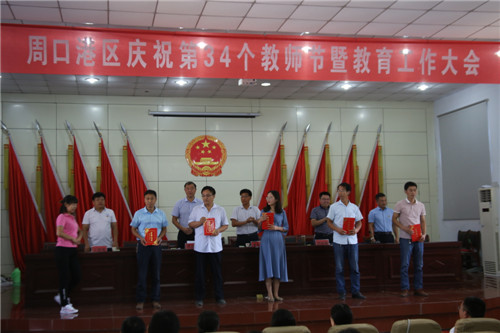 港區(qū)黨委委員張東立代表港區(qū)黨委、管委會向港區(qū)全體教育工作者、離退休教師致以節(jié)日的問候致。張東立說,周口港區(qū)自成立以來,每年都舉行隆重的教師節(jié)慶祝表彰大會,大張旗鼓表彰一大批優(yōu)秀教師、優(yōu)秀校長、先進(jìn)教育工作者等教師楷模,在全區(qū)營造了尊師重教的濃厚氛圍。近年來,全區(qū)總體辦學(xué)條件明顯改善,各級教育協(xié)調(diào)發(fā)展,教育環(huán)境明顯優(yōu)化,教師隊(duì)伍建設(shè)明顯加強(qiáng),教育質(zhì)量明顯提高,群眾滿意度明顯提升。