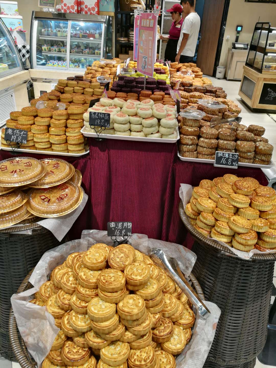“給我拿兩斤青紅絲酥皮和五仁的?!币晃?0出頭的女士邊付錢邊說,小時候,過中秋節(jié),一家人圍坐一起吃這種半斤重的老式月餅,一個月餅分八塊,一人一塊,現(xiàn)在回想起來,“真甜”!