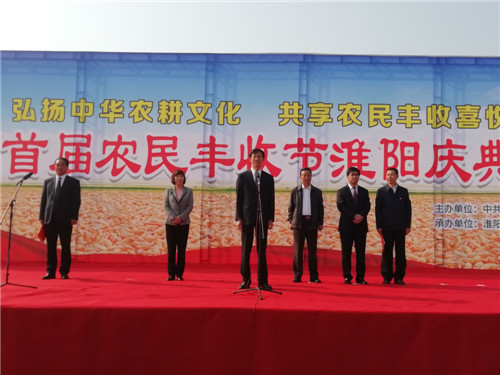 縣委書記馬明超宣布淮陽縣首屆“中國農(nóng)民豐收節(jié)”慶典活動開幕??h委副書記、政法委書記岳新坦主持慶典儀式。戴亮和副縣長王汝凌分別致辭。