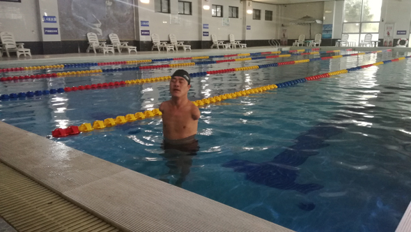 在交談中記者了解到,島建書在5歲時觸高壓線造成雙臂截肢。“12歲那年,我在電視上看別人游泳,覺得別人能做到的我也能做到,從那時起我就決定學(xué)習(xí)游泳?!睄u建書說,當(dāng)時沒有條件,他就在河里自學(xué),期間還兩次溺水,所幸被人救起。