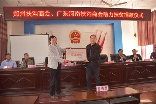 致富思源,反哺故里;捐資幫扶,回報(bào)家鄉(xiāng)。10月19日上午,鄭州扶溝商會(huì)會(huì)長(zhǎng)翟德峰、廣東省河南扶溝商會(huì)會(huì)長(zhǎng)鄒四紅回到扶溝,為家鄉(xiāng)脫貧攻堅(jiān)事業(yè)不僅“雪中送炭”,送來捐助的善款,而且“錦上添花”,與貧困村簽訂了結(jié)對(duì)幫扶協(xié)議。