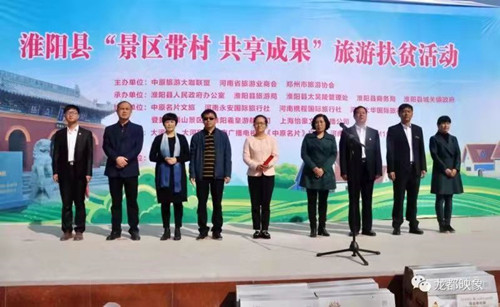 金秋時(shí)節(jié),天藍(lán)水碧。11月3日上午,“景區(qū)帶村,共享發(fā)展”旅游扶貧走進(jìn)淮陽(yáng)活動(dòng),在國(guó)家級(jí)旅游扶貧開(kāi)發(fā)村、河南省鄉(xiāng)村旅游特色村一一該縣城關(guān)鎮(zhèn)從莊行政村隆重舉行。來(lái)自河南各地市25個(gè)旅游團(tuán)隊(duì)1400余名游客參加了此次活動(dòng),河南廣播電視臺(tái)《中原名片》欄目全程直播活動(dòng)情況,直播間觀眾互動(dòng)達(dá)55萬(wàn)多人次。開(kāi)幕式上,副縣長(zhǎng)張潔致辭,縣政府辦公室駐從莊村第一書(shū)記推介從莊行政村鄉(xiāng)村旅游情況,縣旅游局與河南永安國(guó)際旅行社、河南攜程國(guó)際旅行社簽訂戰(zhàn)略合作協(xié)議。河南大華國(guó)際旅行社、河南攜程國(guó)際旅行社、上海恰豪文化傳播有限公司、中原旅游大咖聯(lián)盟等企業(yè)為從莊行政村及貧困戶捐贈(zèng)油、米、棉被等慰問(wèn)品及現(xiàn)金2萬(wàn)元??h電商服務(wù)平臺(tái)、從莊村民展銷布老虎、泥泥狗、土雞蛋、兔子肉、干野菜等農(nóng)副手工產(chǎn)品40余樣?;顒?dòng)結(jié)束后,全體游客赴龍湖國(guó)家濕地公園、太昊陵景區(qū)觀光游覽。
