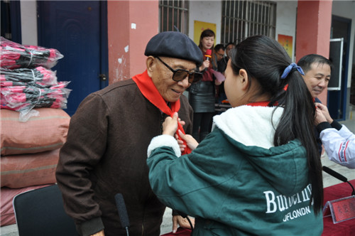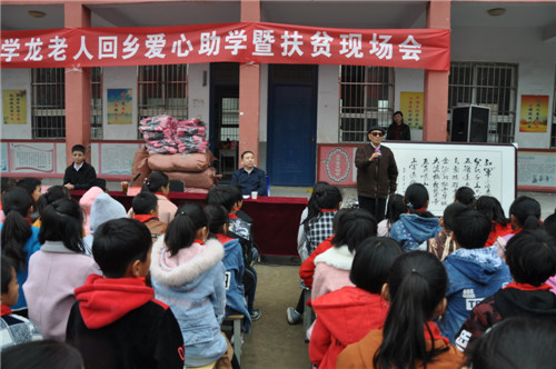 “讓我們用熱烈的掌聲,向于學(xué)龍老人表示崇高的敬意?!?1月5日上午,商水縣黃寨鎮(zhèn)埠口小學(xué)愛心助學(xué)現(xiàn)場(chǎng),該鎮(zhèn)黨委書記朱宏偉和全校師生一起,向85歲高齡的于學(xué)龍表示感謝。當(dāng)天上午,原建設(shè)銀行北京分行總經(jīng)濟(jì)師于學(xué)龍先生輾轉(zhuǎn)千里回到故鄉(xiāng),用實(shí)際行動(dòng)助力家鄉(xiāng)脫貧攻堅(jiān),為全校370多名孩子送去書包、書法作品等愛心禮物。