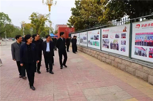 11月14日下午,鄲城縣委書記羅文閣等縣四個(gè)班子領(lǐng)導(dǎo)一行到縣世紀(jì)廣場(chǎng)共同觀看《決戰(zhàn)決勝---鄲城縣脫貧攻堅(jiān)工作攝影》展。