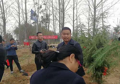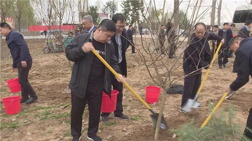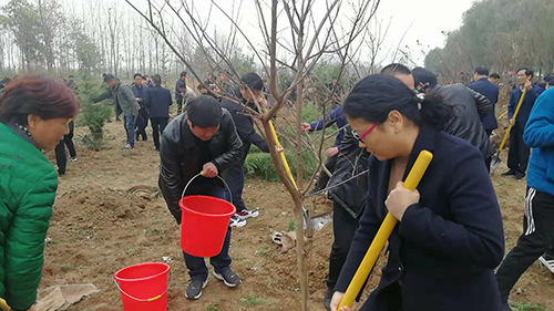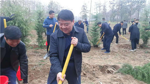 當(dāng)天下午雖然暖陽(yáng)照射,但初冬的鹿邑大地仍是涼風(fēng)習(xí)習(xí)。不過這一點(diǎn)兒也沒有影響到大家的心情。一到植樹現(xiàn)場(chǎng),梁建松、李剛等領(lǐng)導(dǎo)就和大家一起興致勃勃地拿起鐵鍬等工具忙碌起來,揮鍬鏟土,扶樹填土,澆水正苗,每道工序都做得認(rèn)真細(xì)致、一絲不茍。